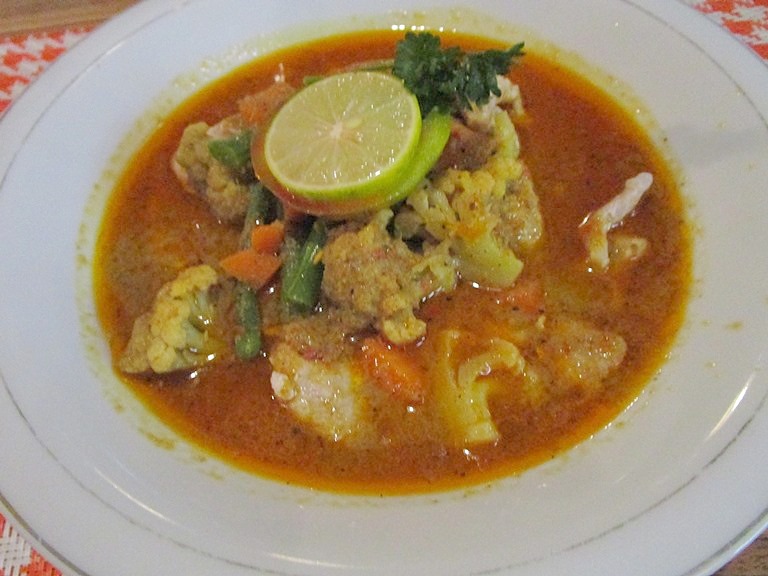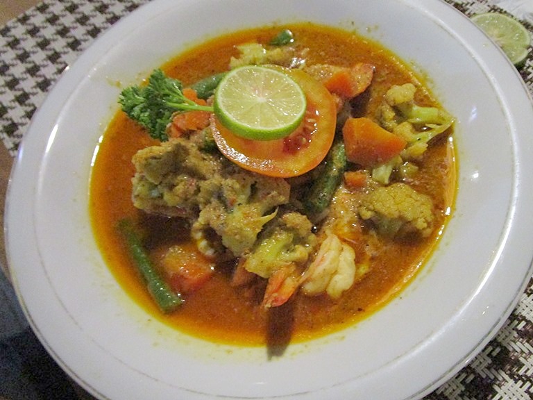 シーフードカレー、ライス付き。あまり辛くないらしいです。大き目の具がゴロゴロと。