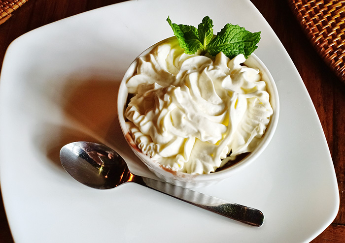 チョコレートポット Rp.30,500。ちょっと珍しいメキシコのデザート。ホイップクリームの下にはチョコレートクリームが。思ったより甘さ控えめでペロリといけます。
