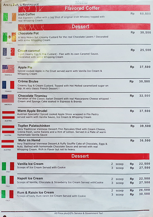 デザートメニューはそのデザートが生まれたところの旗がつけられています。