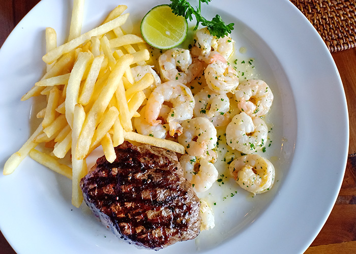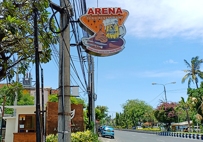 「美味しいステーキが食べたいな〜」なんていう時には必ず名前があがるレストランがここ「アリーナ パブ&レストラン」。サヌールのマクドナルドからバイパスを 約100メートル南下したところに位置します。