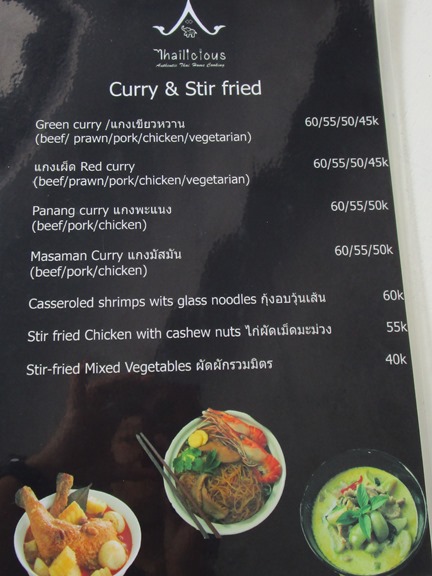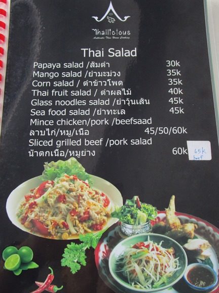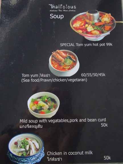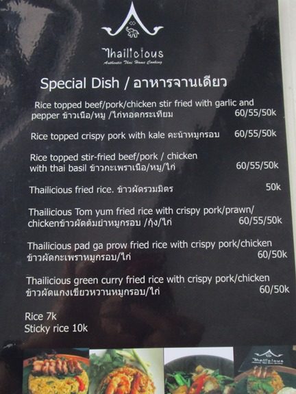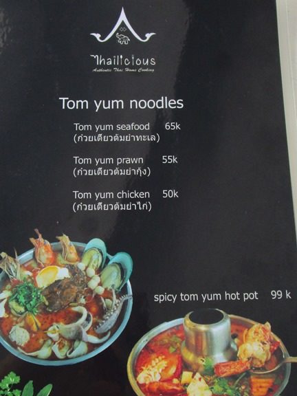 タイ料理のタイリシャス、場所はカユマニス、ミンピマニス、ワルンサロ、等のあるJl. Danau Tandakan、パサールシンドゥの側です。