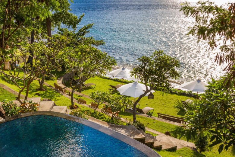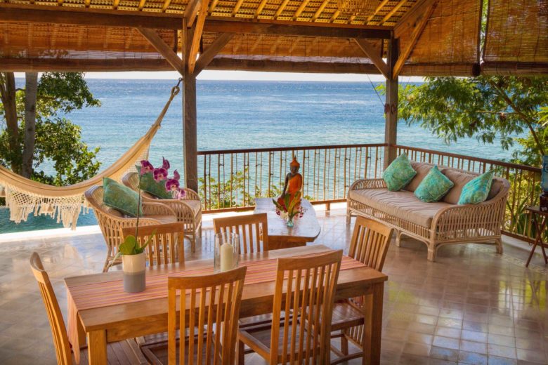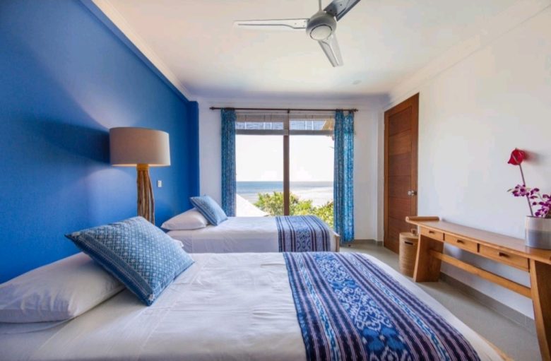 道路からビーチに下っていく丘の斜面に建っているので、海が目の前すぐーー感はないですがどのヴィラからでも海が良く見えます。一番下まで降りれば、イブスビーチに出れますよ。