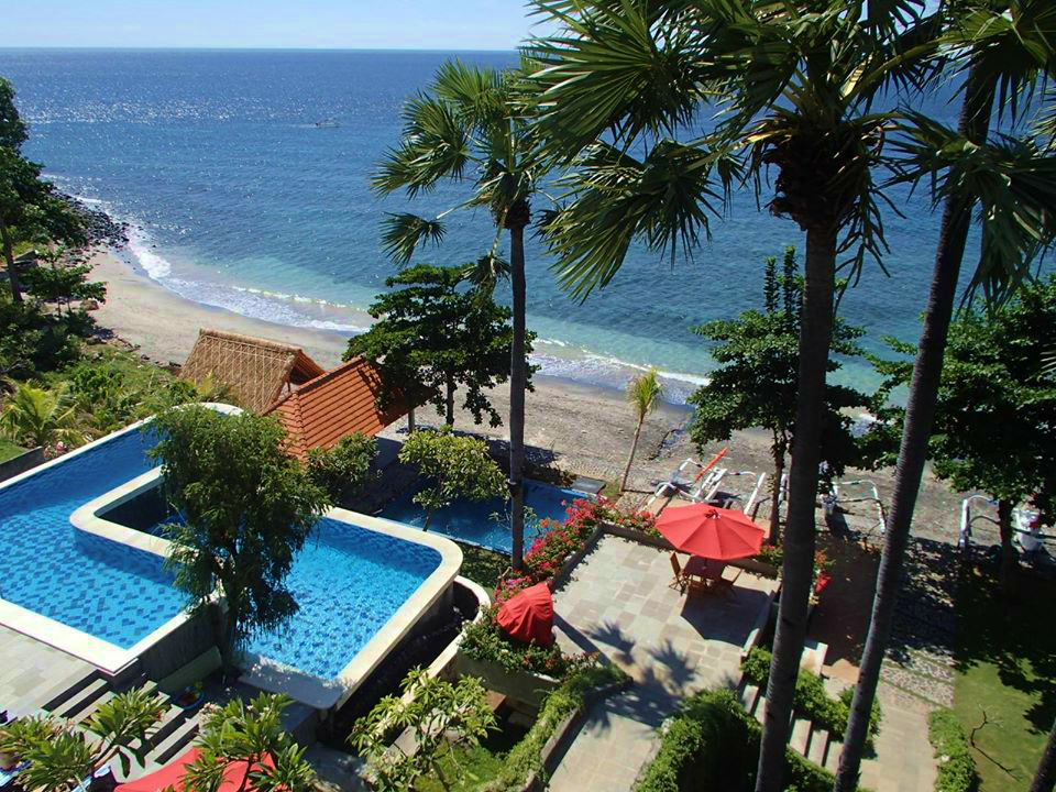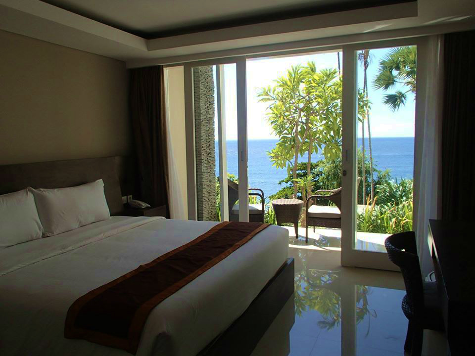 ここもイブスビーチに面した、見晴らしよく、部屋はビジネスホテルっぽい感じでバリの田舎なれしていない方や虫関係絶対無理という方でも、ここなら安心して泊まっていただけるのではないかなと思います。