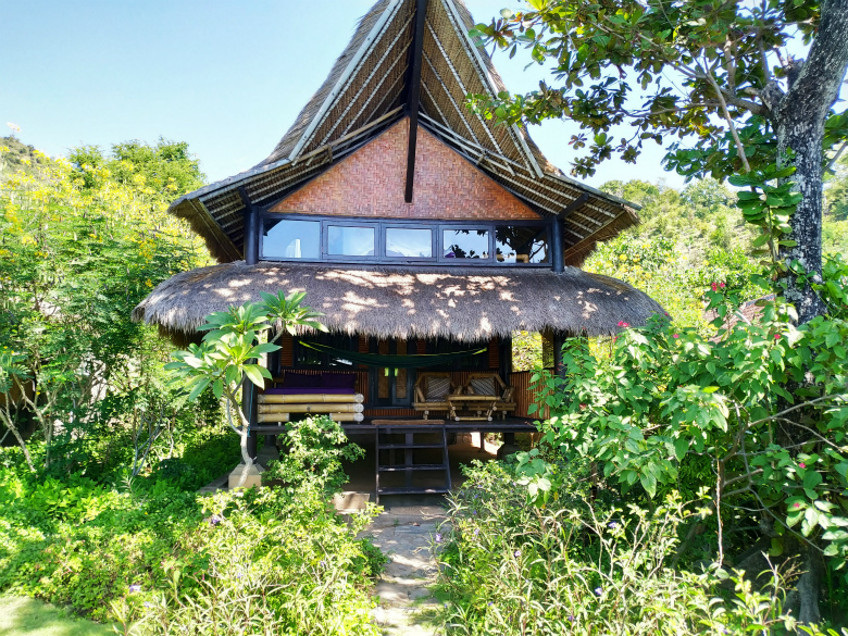テラスにはハンモックあり、鬱蒼と茂る緑の中で波音聞きながらくつろげます。