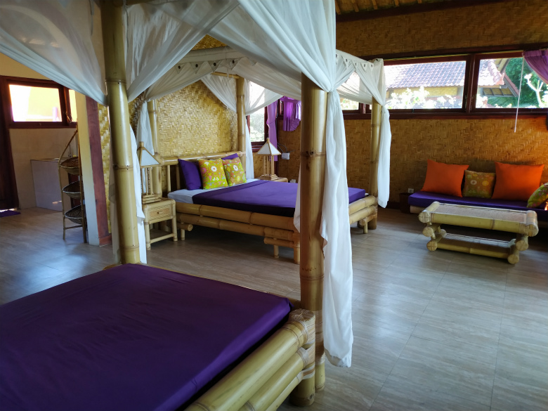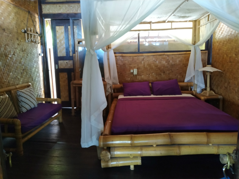 クーラーなくても竹の壁で隙間から風が吹き、涼しいです。