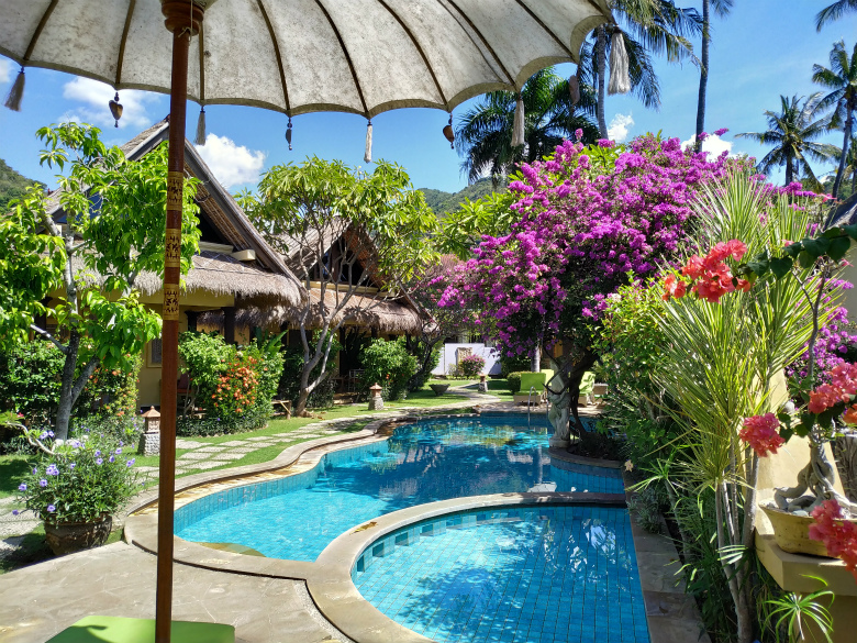 ここのお庭、ロマンチックでperfumed garden”香りの庭”と名づけられているんですが、名前どおりに、チャンパカの木がたくさん植えられており、いい香りが一面漂ってます。