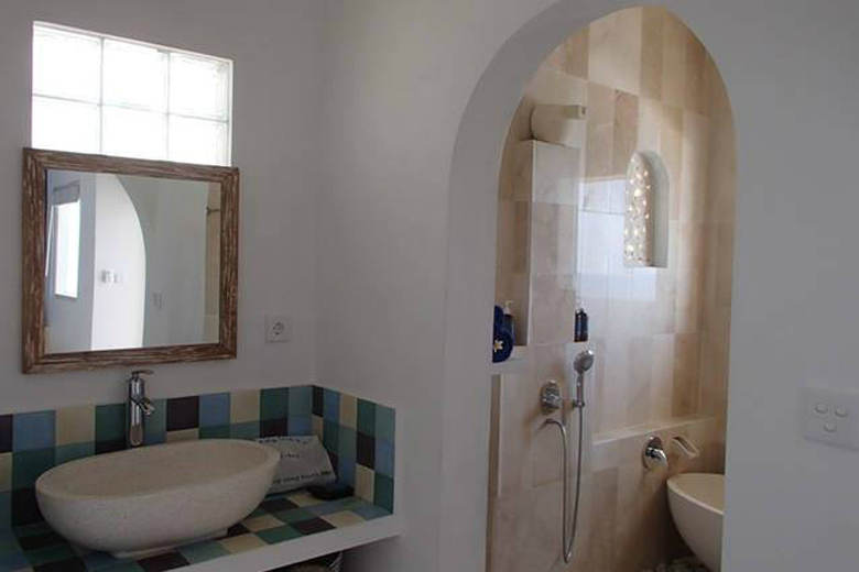 お部屋とお部屋のテラスからの眺め、白と青でまるでギリシャのよう(笑)