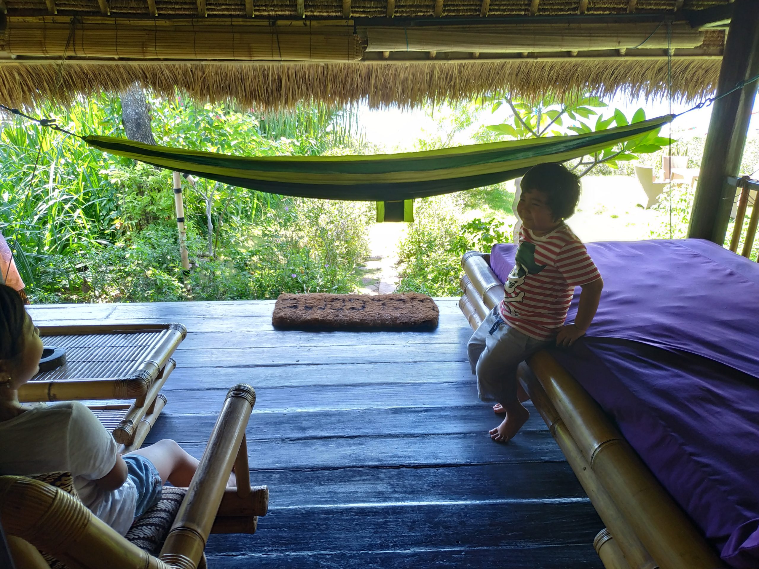 テラスのハンモックで遊ぶお子達…