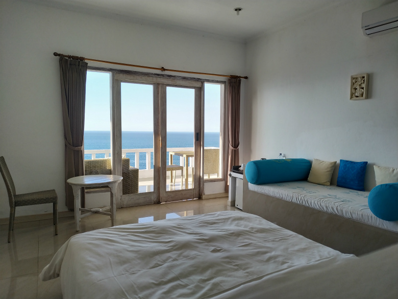 道路をはさんで海側に4室と丘側に3室の合計7室だけの小さな宿で、海側も丘側もどちらも丘にあるので、見渡せる海の眺めが素晴らしいです。