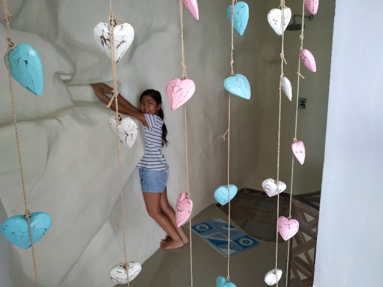 シャワー(うちの娘入りですみません)。ギリシャの島のホテル風を意識したんでしょうね。