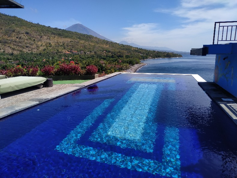 プールからもアグン山。
