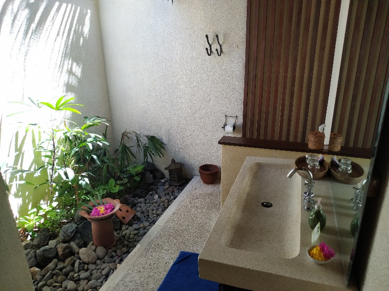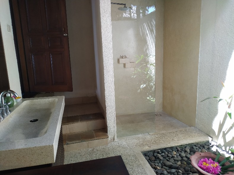 バスルームはオープンエアで、太陽光が燦燦と。