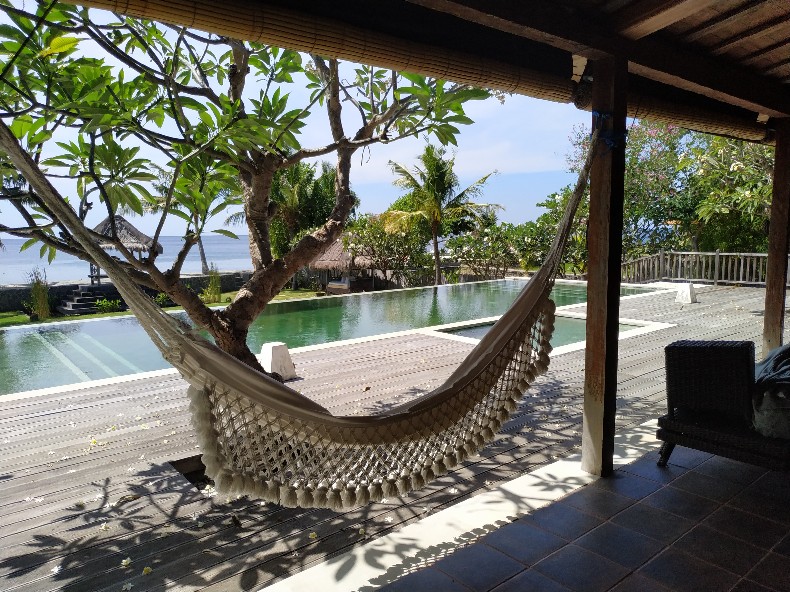プールの横ハンモックも素敵。