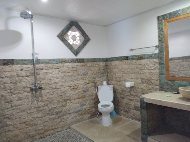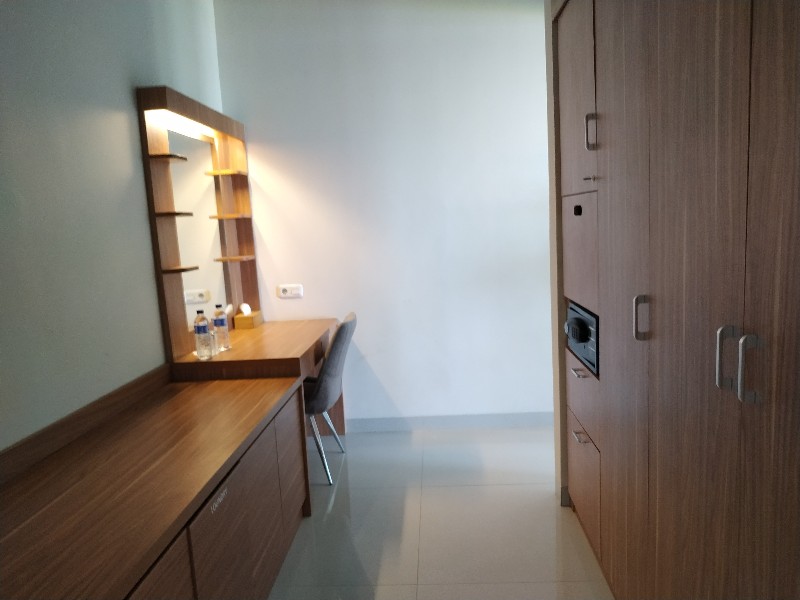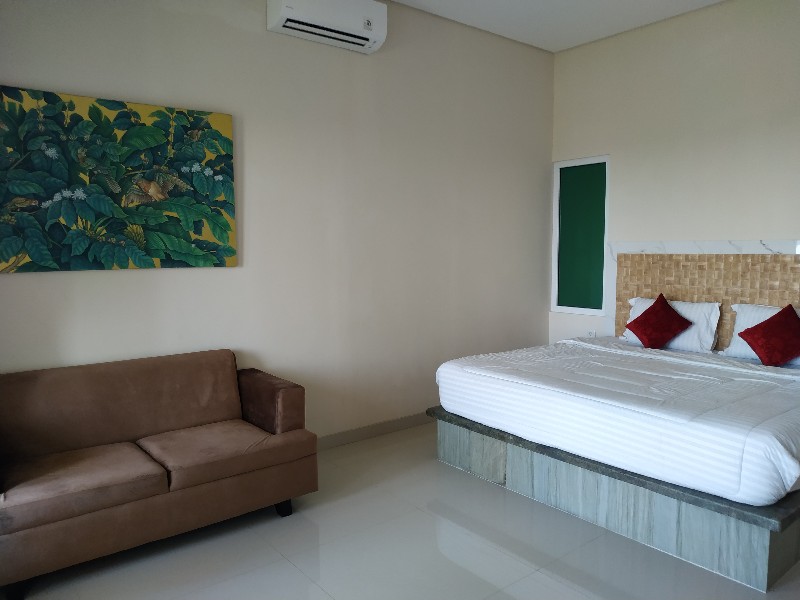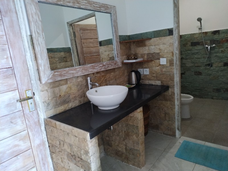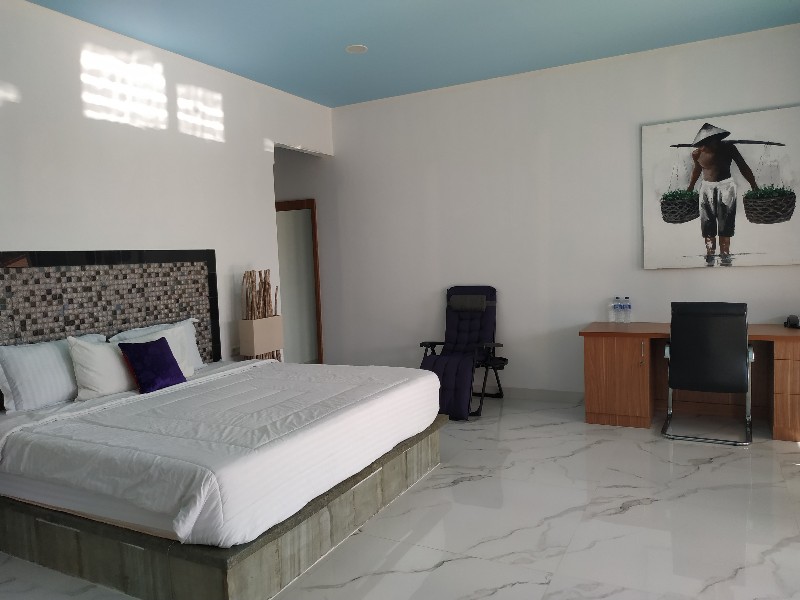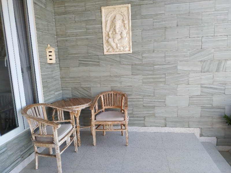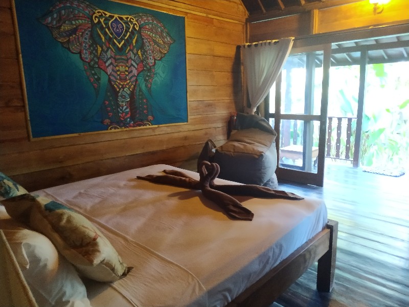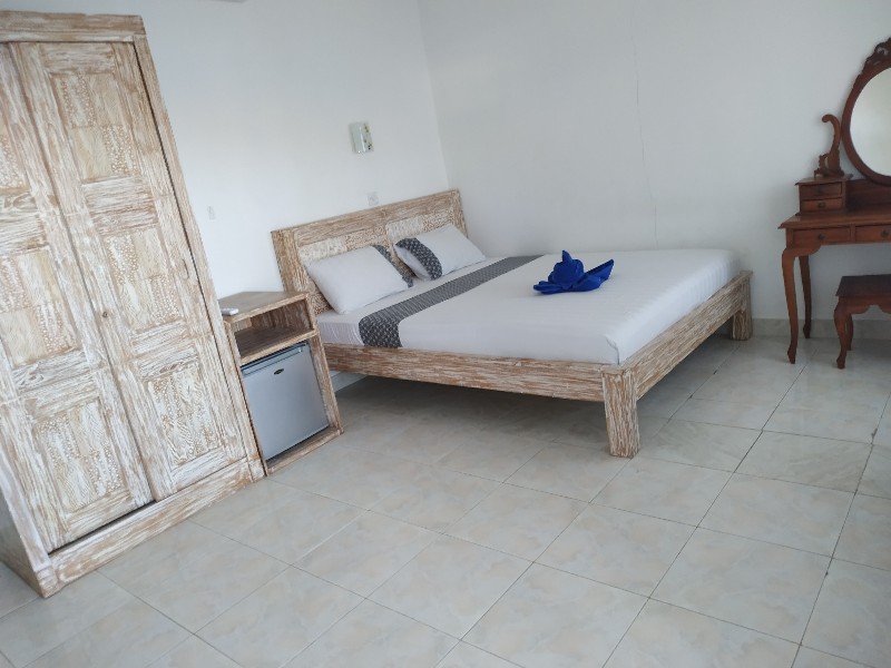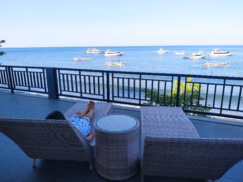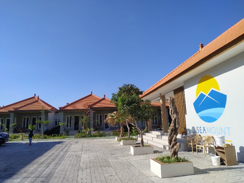 ここは一般道路はさんで海側の施設と丘側の施設にわかれていて、ガーデン側はとても手頃な25万RPのお部屋もあります。でも私のおすすめはせっかくなので海側の2階の一番眺めのいいお部屋。ジュメルク湾が一望、ガランカンギンにはプールはないのですが海にすぐ出れるので、海に浸かるの大好きさんに絶対おすすめ。