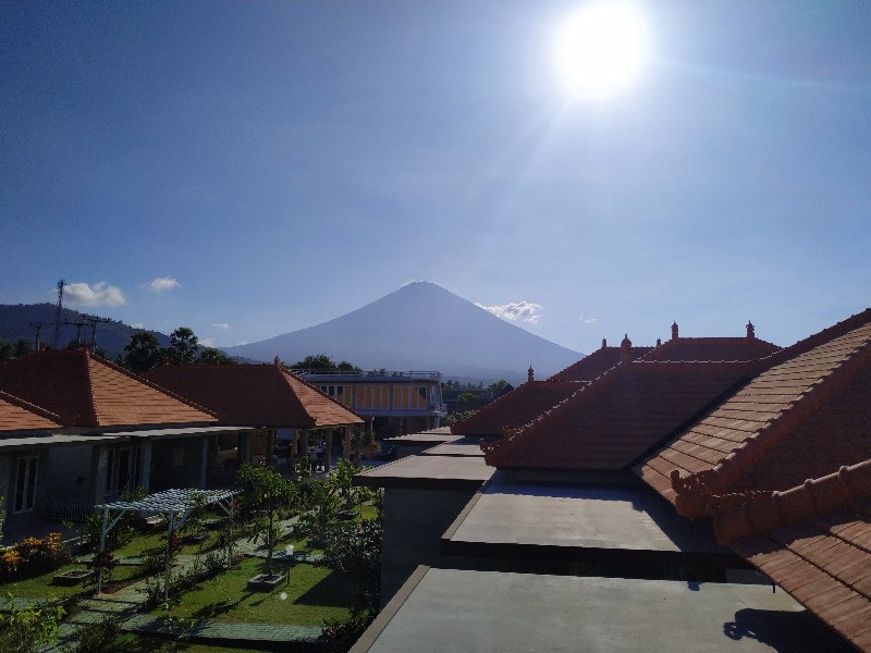 ホテルの前は遊歩道っぽくなってます。ホテルの名前の通りに 海とアグン山が一望。
