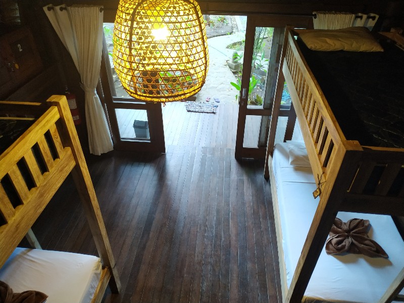 一部屋は相部屋6人分のベッドです。 1階に2段ベッドが2台ロフトにマットレスがふたつ。