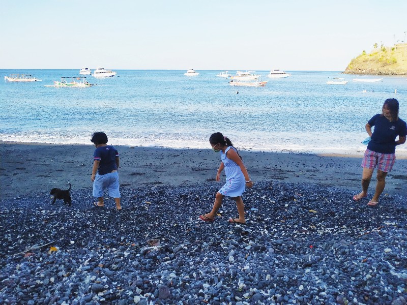 この辺りの一番大きな湾で、ギリ島へのスピードボートの発着場となっております。 とはいえジェッティもないので、足を濡らしながらバシャバシャ舟に乗り込む形ですけどね。(とはいえ、このスピードボートも3末からは出ていないので、魚達にとっては穏やかな日々が続いてるんでしょうね。)