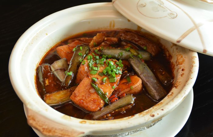エッグプラントクレイポット Rp.90,000。茄子と豆腐の四川風味で、メニューに「辛い」を意味する唐辛子マークがついていますが、私的には全然辛くなく、バクバク食べられます。マーボ豆腐が大好きな私は◎。