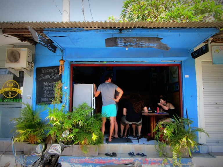 お名前はワルン サヌール セガール Warung Sanur Segar。若干覚えにくい名前&小さいんで前を通り過ぎて海まで行ってしまいました。