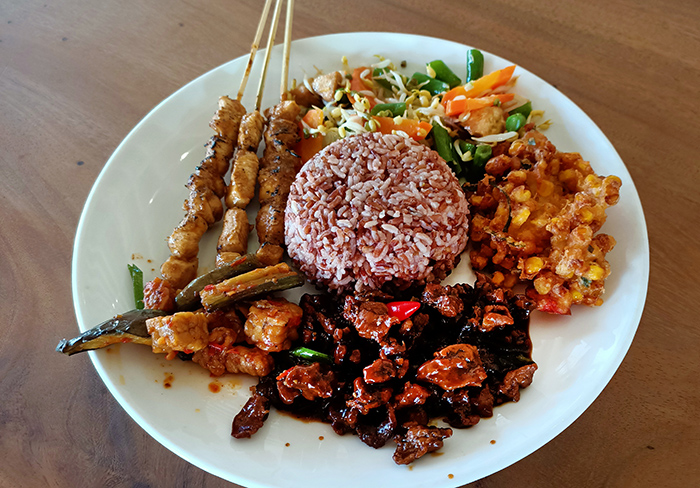 あ、ご飯は白米、赤米、ターメリックライスから選べます。写真は赤米をチョイス!