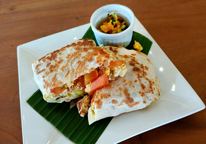 トマトやベーコン、卵、アボカドなど、サラダ感覚のさっぱりブリトーです。