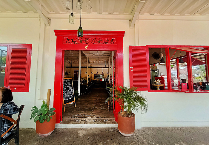 アイボリーを基調に、赤の扉や窓がいいアクセントになっています。