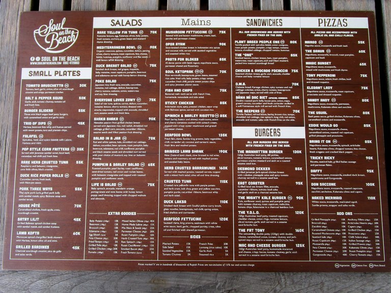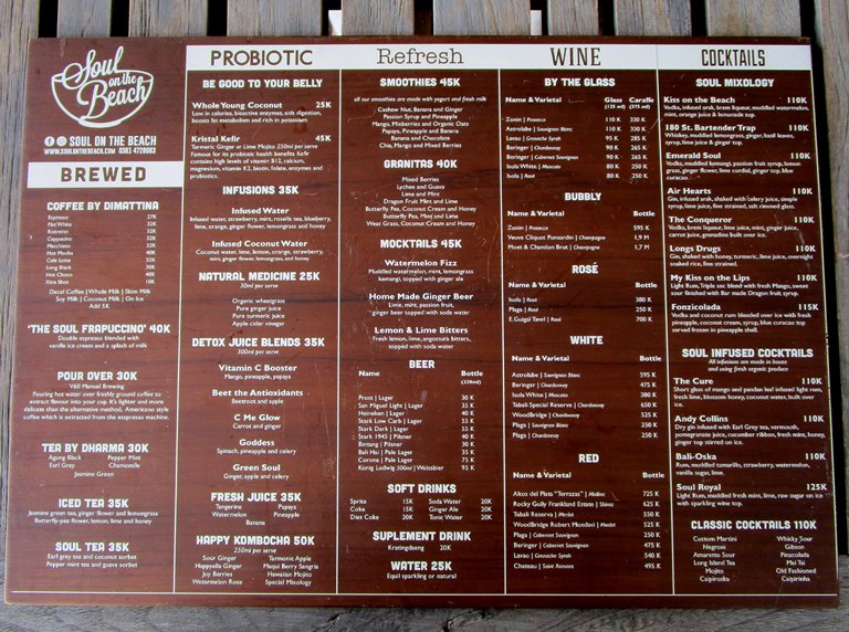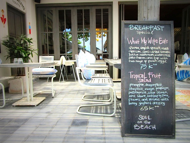 サヌールのメインストリート、タンブリンガン通り沿いの姉妹店ソウルオンザボウルも人気ですが、異なるメニューもありどれも美味。なんといってもサヌールの海で過ごすのにぴったりのカフェです。海風も心地よくついつい長居してしまいましたよ♪