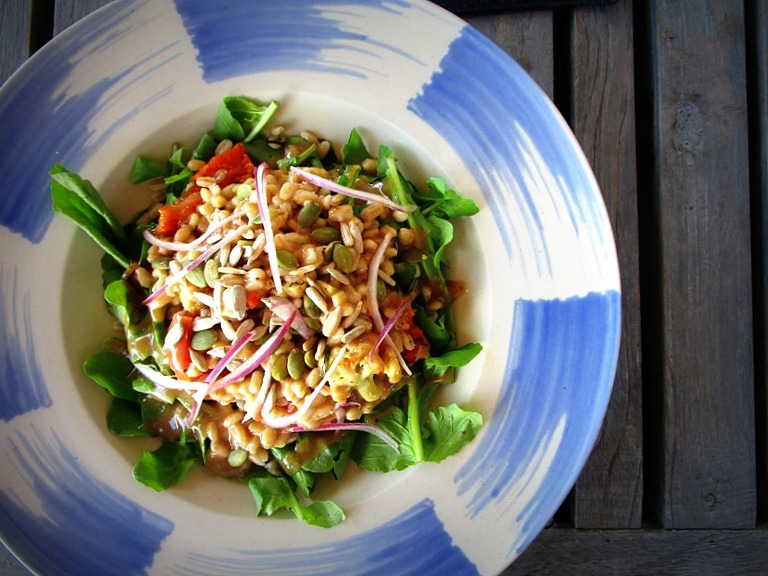 パンプキンと大麦のサラダ。想像していたのと全く違うものが来た(笑)豆好きの方にはおすすめです。