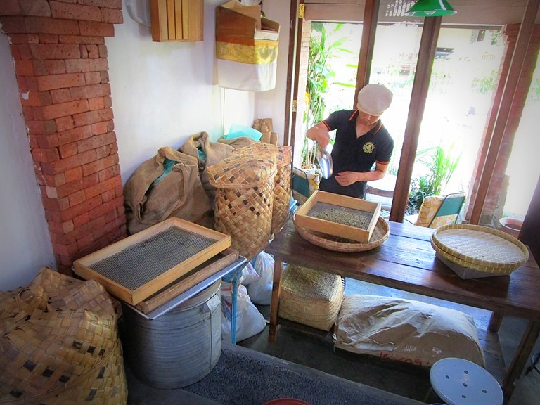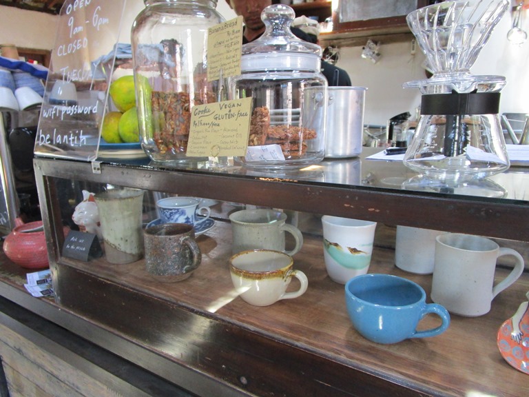 器、ばらばらなのがまた素敵。バリで作られたものだそうです。紙コップや機械で生産されたロゴ入りカップが味気なく感じた。。。
