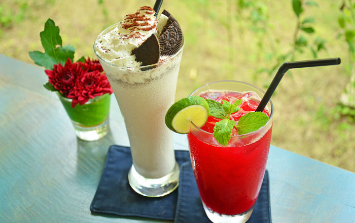 ↓ドリンクは、ヘルシー系ジュースの中から、フレッシュ&スリムジュースRp.38,000と、オレオミルクシェーキRp.45,000をチョイス。もちろんお酒もありますよ〜。