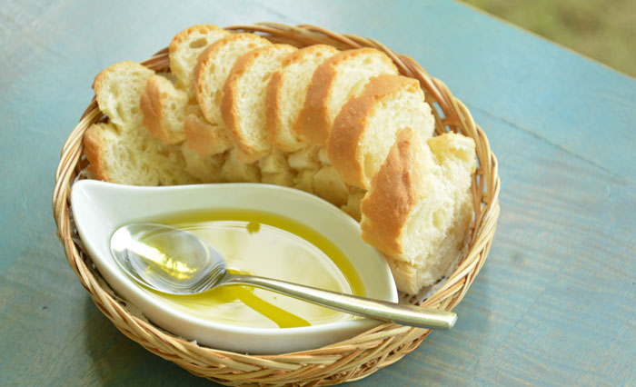 ↓添えのパンは、料理を待ちつつ、オリーブオイルをつけて頂きます。
