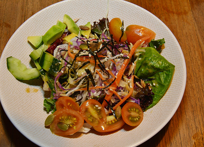 ↓やっと野菜登場!「グリーンサラダ」Rp.20,000。彩りもキレイですよね。ドレッシングも醤油ベースでさっぱり。