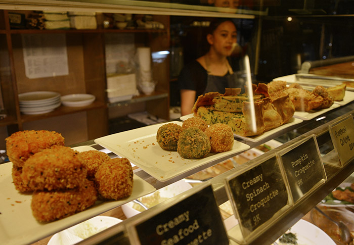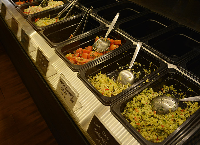 昼間はナシチャンプルがメインで、ロコはもちろん、在住外国人や観光客が引っ切りなしに訪れます。というのもこちらのおかず、インドネシア料理だけでなく、日本食系、パスタ系、サラダなど、とてもインターナショナルに幅広く用意されているのです。しかもどれも美味しい?