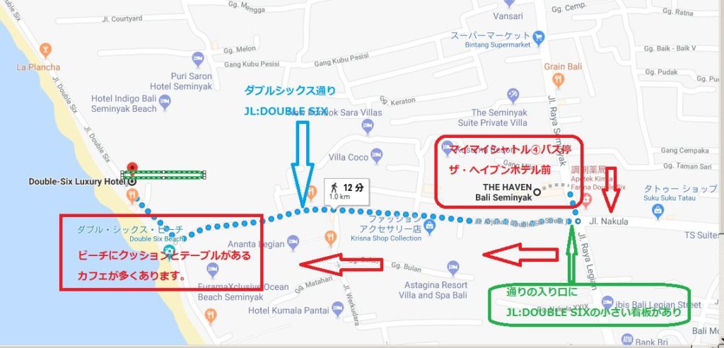 =>1~2分でダブルシックス通り(JL:DOUBLE SIX)右に曲がる