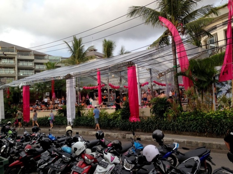 ビーチの向かい側にある、ダブルシックスホテルの通り沿いにあるプールでは水着参加で行われる艶めかしいパーティーが開催されてました。(個人的には音楽がでか過ぎてせっかくのサンセットの雰囲気が壊れるので嫌でした…)
