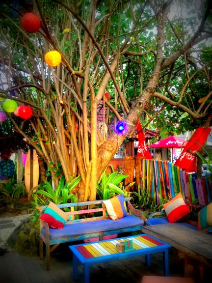 左右に店が並んでいます。このビーチ+クッション黄金コンビ。根が生えて動きたくなくなる事間違いない!!