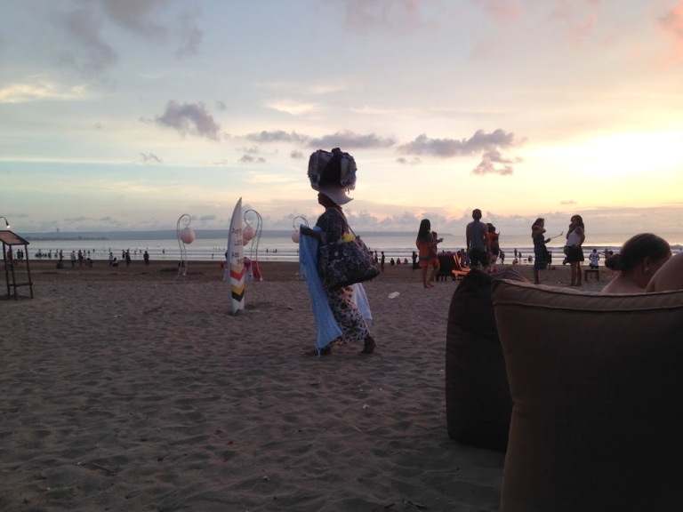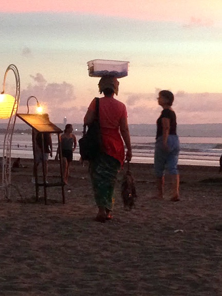 ビーチのクッション席にいると、バリ島名物(?) 物売りが色々きます。