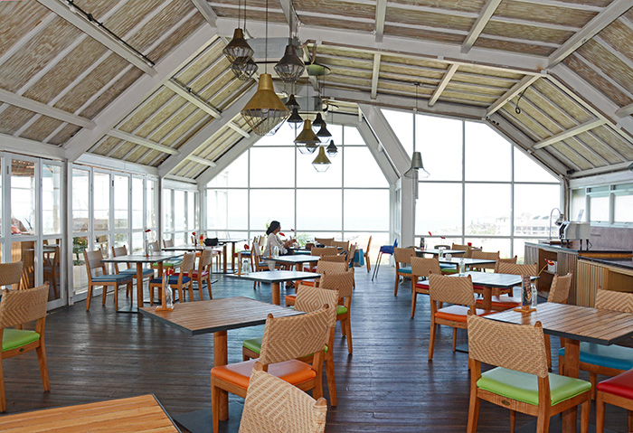 こちらがそのレストラン。ガラス張りのおしゃれな造りでエアコンがよく効いています。