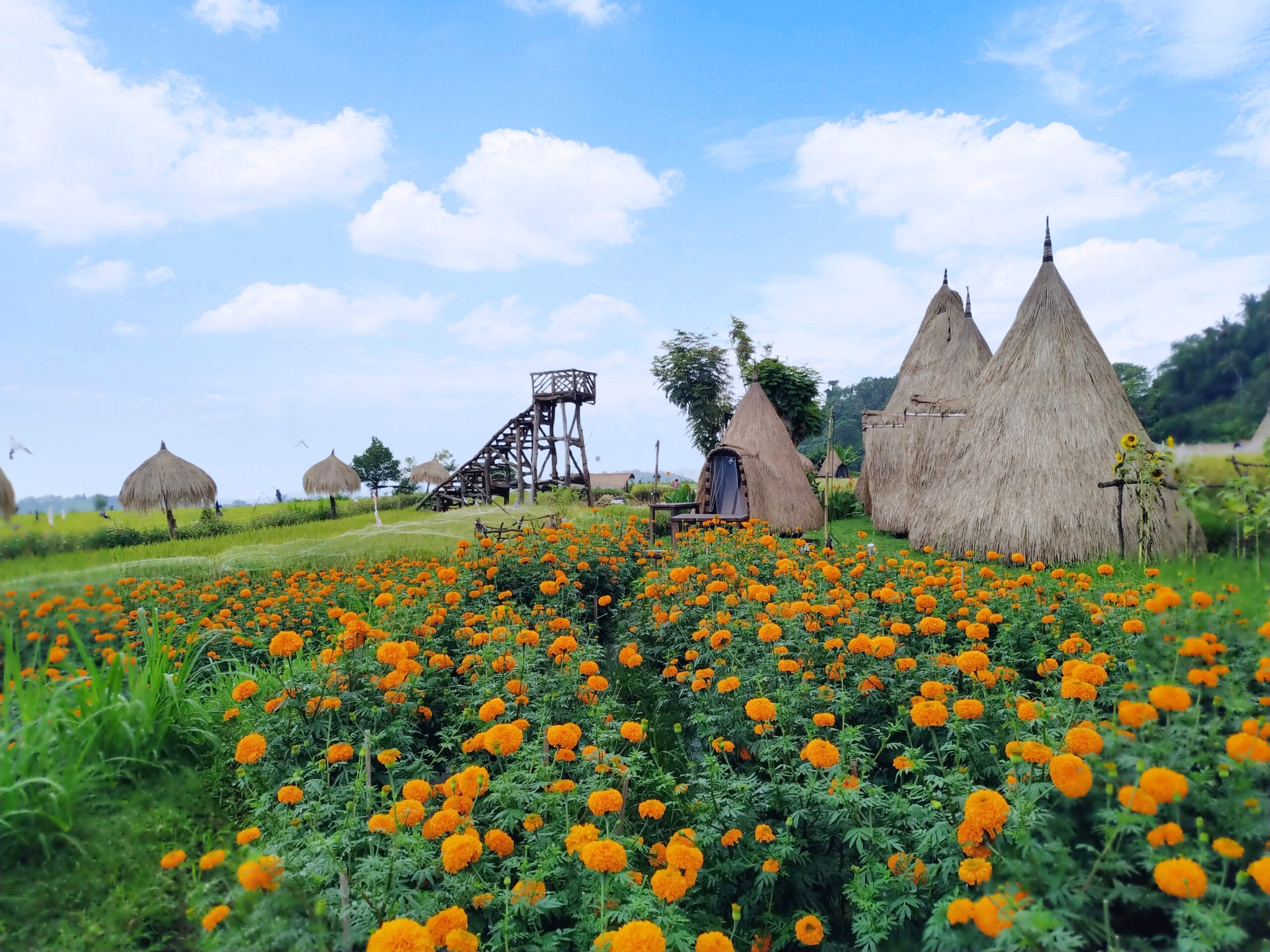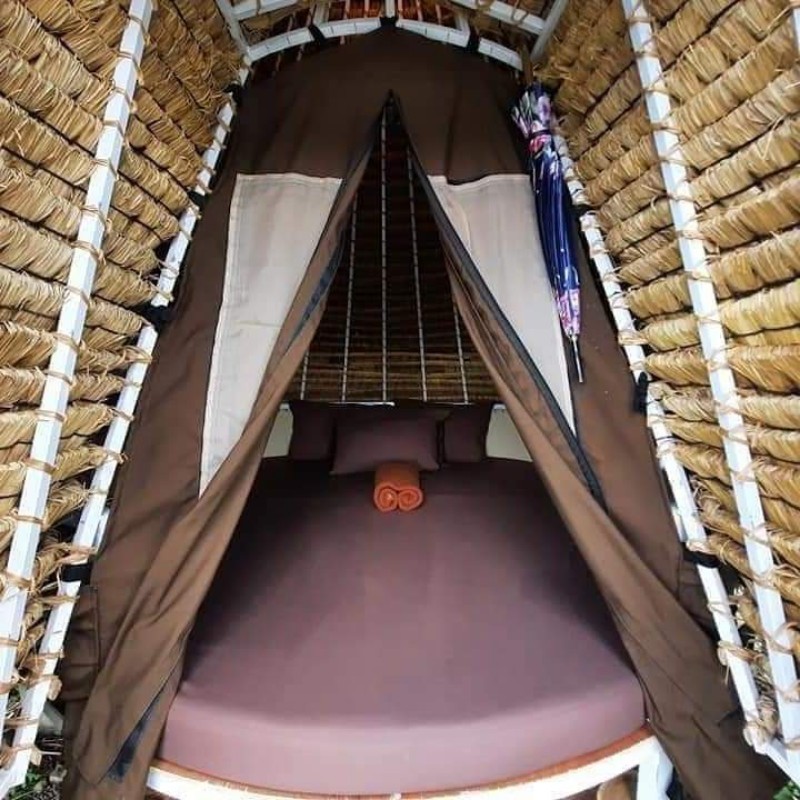 宿泊される方は入場料込みの藁葺きテントが一棟 Rp550,000 (大人2名子供2名可、朝食付き)を支払います。