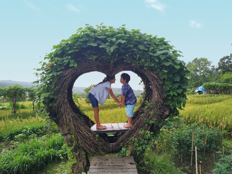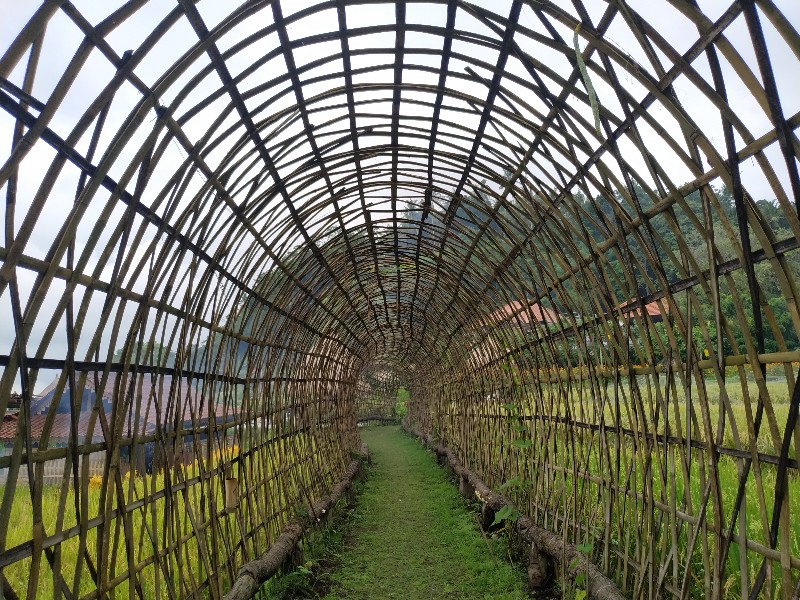 エントランスくぐると田んぼのあぜ道に沿って、順路があり、ちょっとした冒険気分で進んでいけるように施設がパラパラと現れていきますよ。