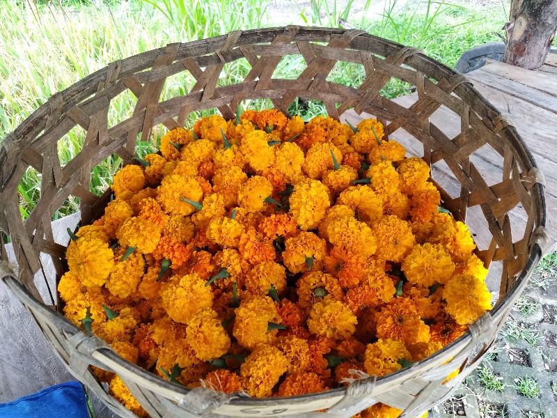 マリーゴールドは、お祈りに使ったり、石像の首飾り用に使うので、市場に出荷するんでしょうね。