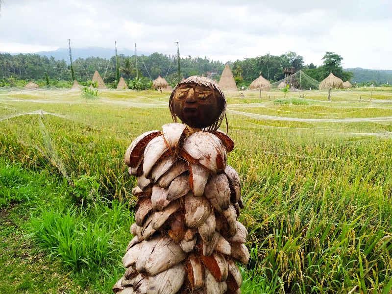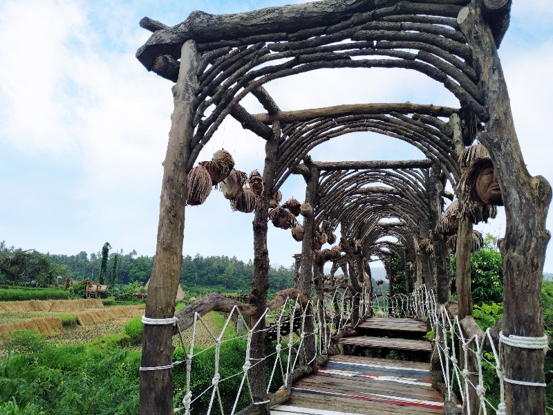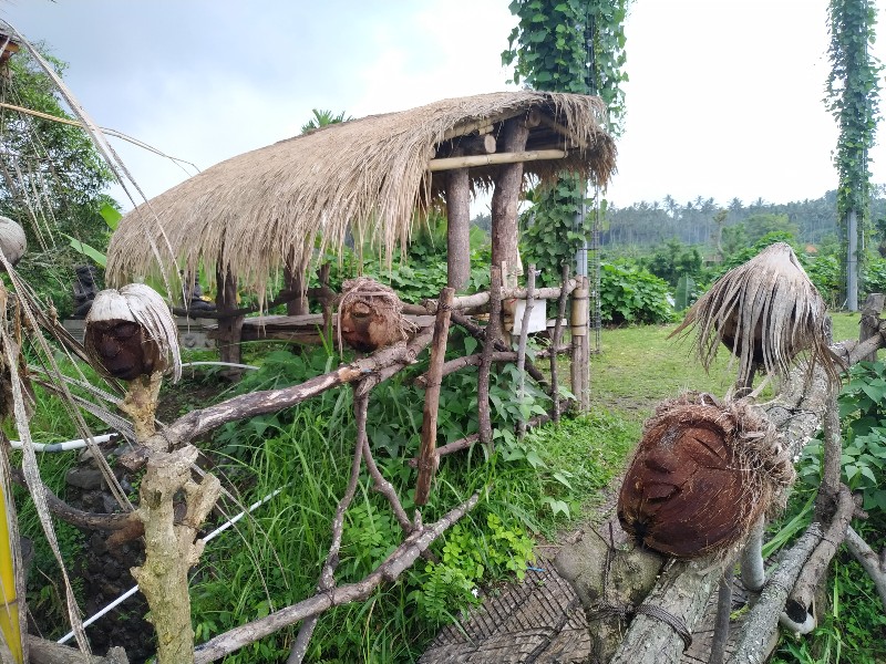 なんだかちょっと不気味な、ココナツで作った生首風のぶら下がった橋。