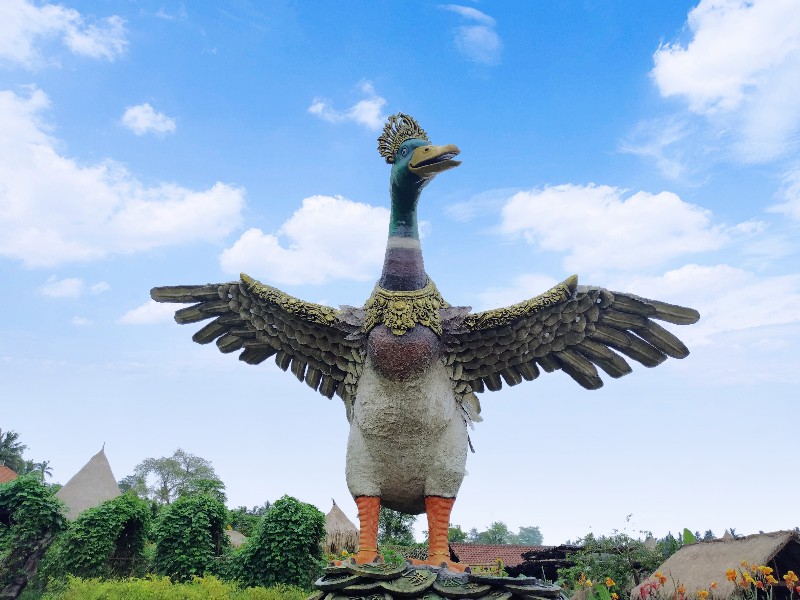 マハガンガのシンボル的な巨大な鴨の彫像です。