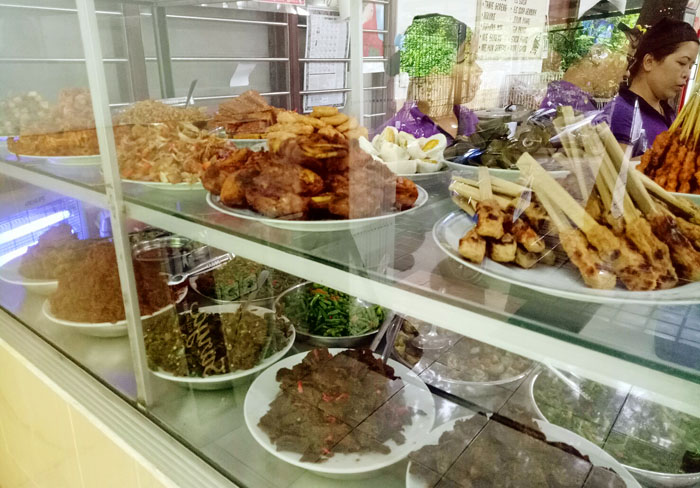 ↓ナシチャンプルのおかずの種類はお肉系、野菜系合わせて大体20種類ほど。いつも定番のメニューです。特にハラル(イスラム教徒がタブーとされる豚・アルコール未使用の食品)とは明記されていませんが、豚肉は使用してない感じ。