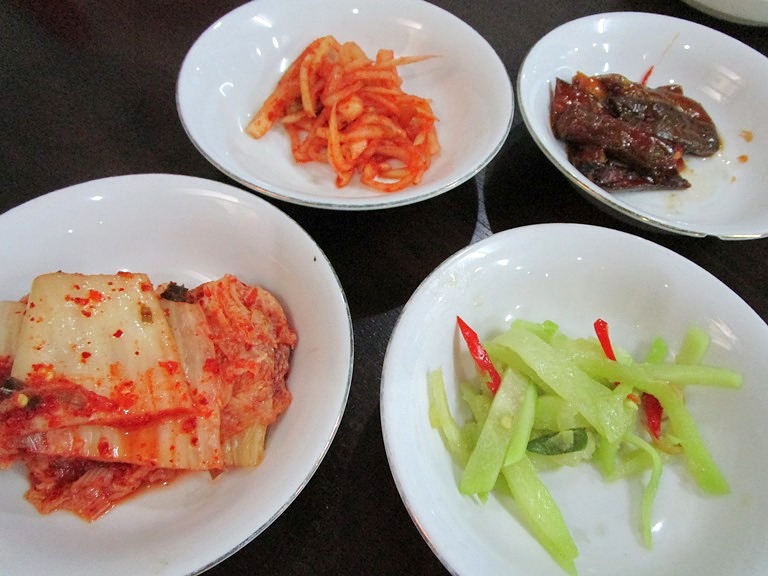 食事の前に出してくれるバンチャン、はお替り自由。美味しいので必ずまたもらってしまいます。あ、お水も出してくれますね。