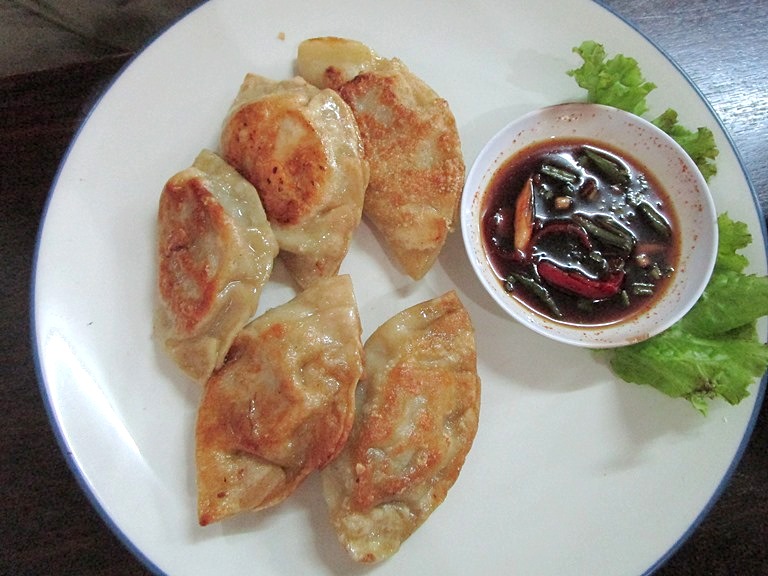 “ドンカス”です。ハンバーグにも見えたけど、中身はポークです、とのこと。とんかつっぽい気がします。右側のGun Man Do は焼き餃子。