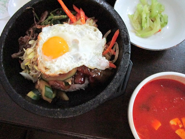 今日のランチは、石焼ビビンバ2名、スンドゥブチゲ1名、にプロモの Gun Man Du を頼んでみました。大き目の焼き餃子、もちっとしていて美味しかったです!