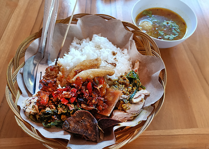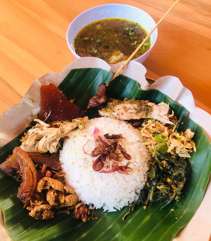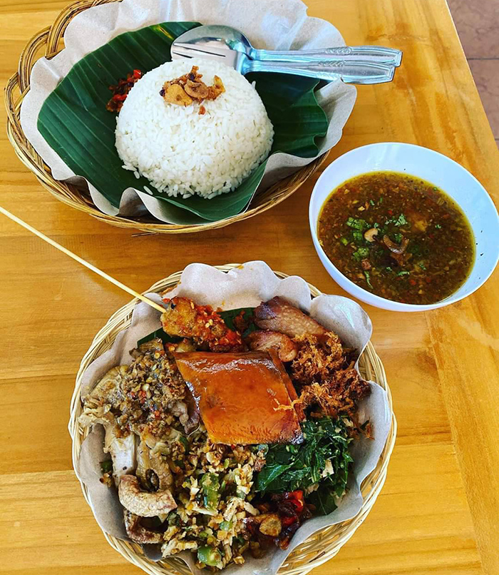 バリの人たちが愛して止まないバビグリン(豚の丸焼き)と私が大好きなアヤムべトゥトゥ(鶏のお腹に香辛料を詰めて蒸し焼きしたもの)!とはやや異なりますがアヤムグリントゥトゥが一緒に食べられるというものでした💗