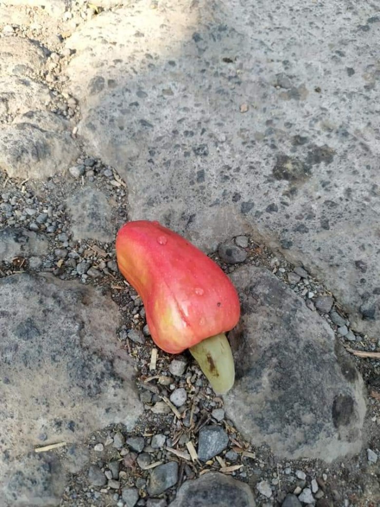 アメッドの山間に入ると、そこかしこにカシューの木がはえていて、10月-11月に実がたくさんなります。道のあちこちに落ちてます。マンゴー同様にウルシ科なので、かぶれる人は、マンゴーの木やカシューの木には近づかないように気をつけてくださいね。