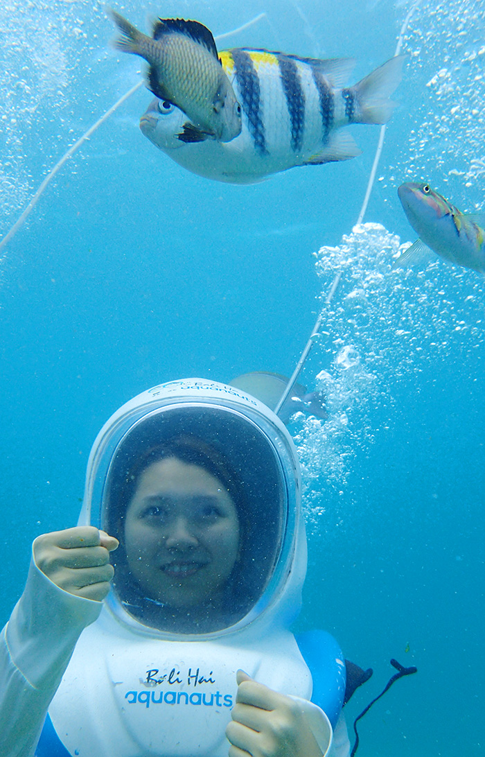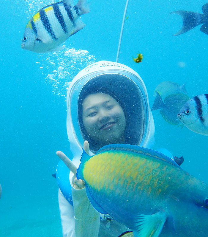 カラフルな熱帯魚と一緒に写真? 約30分ほど海中の散歩を楽しめます。